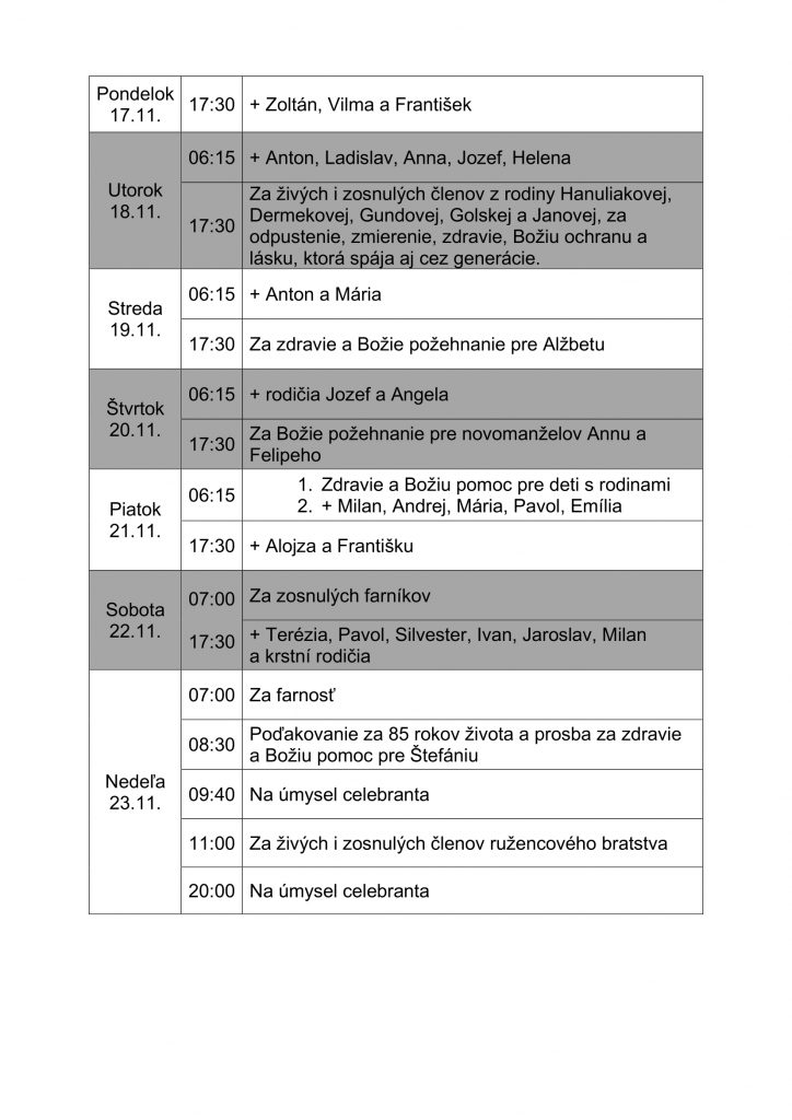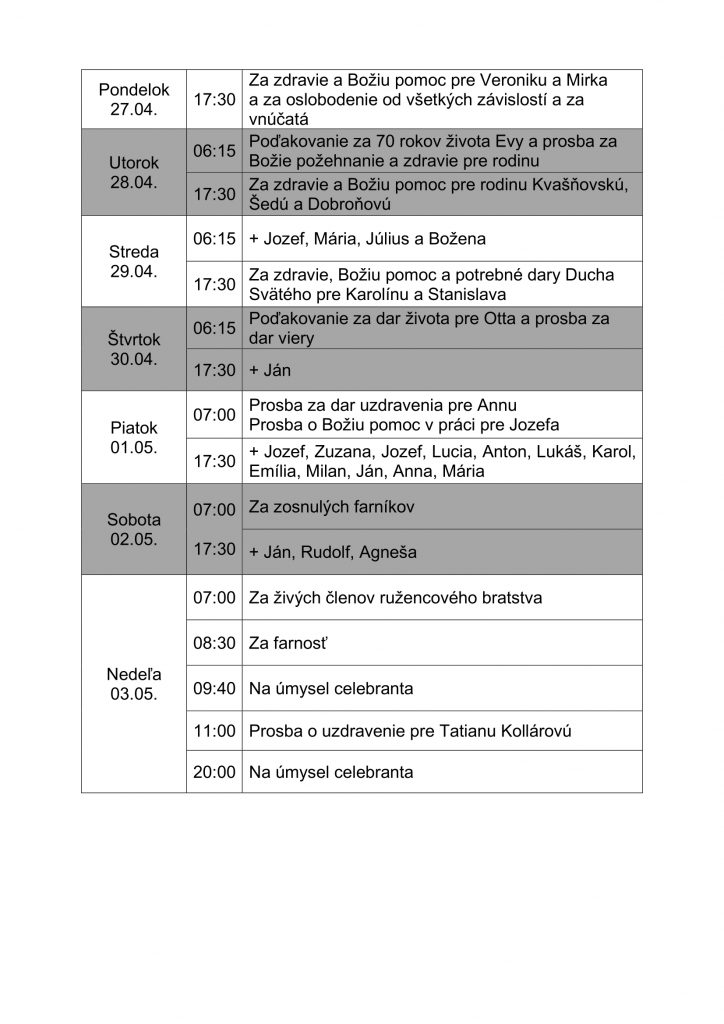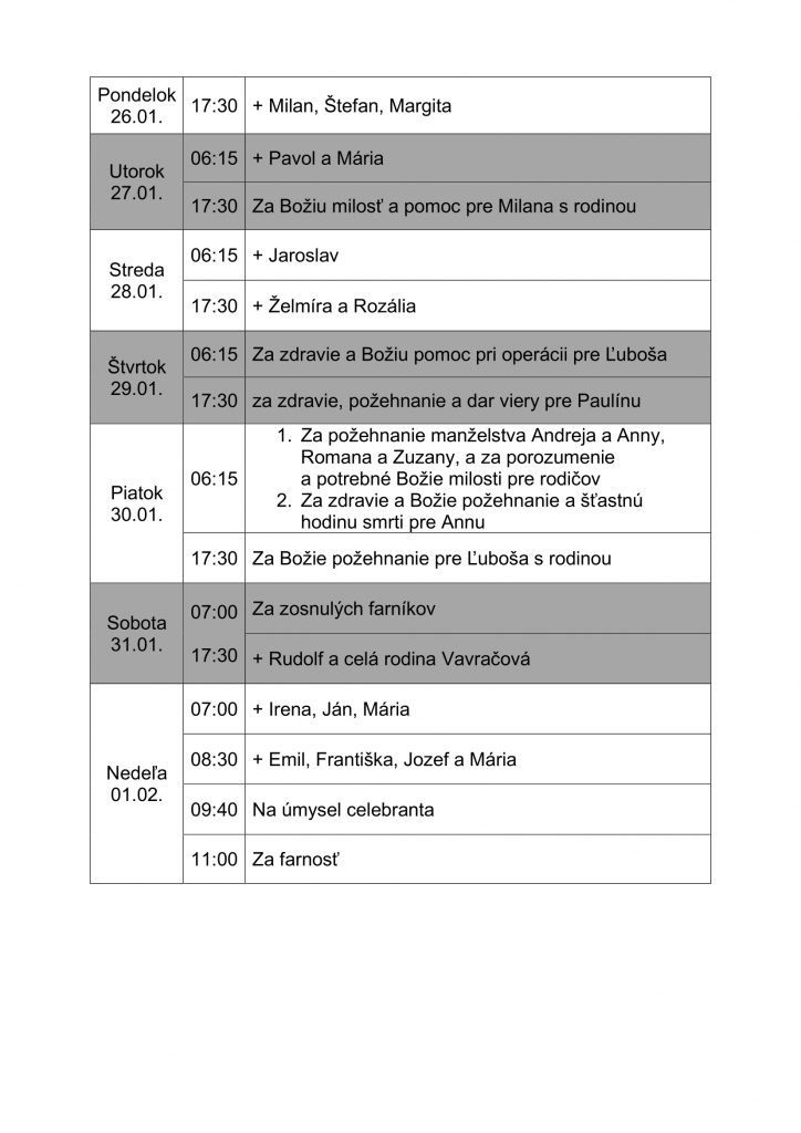 Slávenie svätých omší v aktuálnom týždni